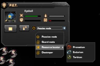 У P.E.T. есть два основных режима: пассивный режим и режим защиты. Пассивный режим означает, что PET будет просто следовать за Вами. Режим защиты означает, что PET будет атаковать всех, кто атакует Ваш корабль. Чтобы увеличить кол-во режимов работы нужно купить и установить мехнизмы в ангаре.